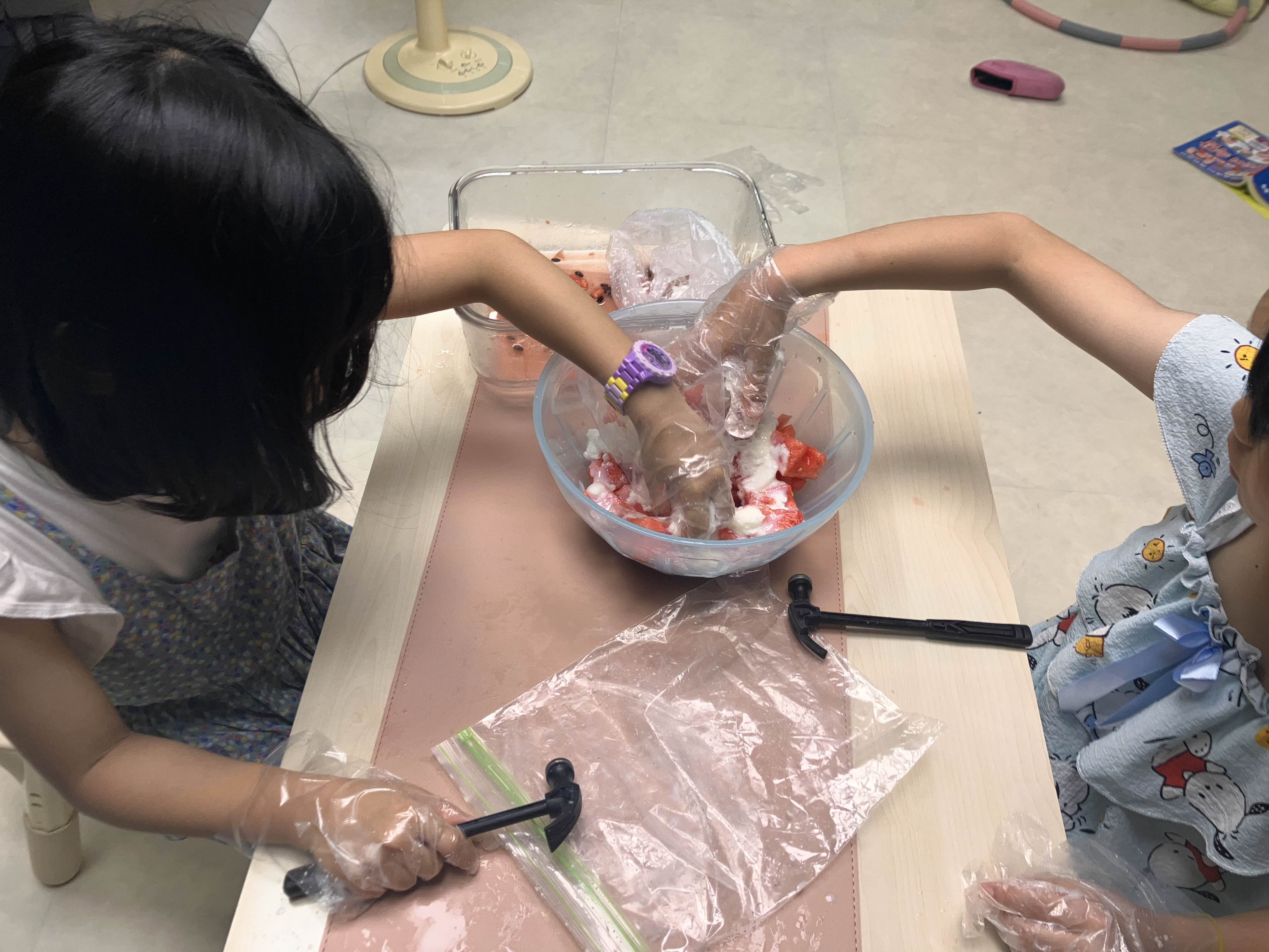 비닐에 넣어주고 아이들에게 망치로 부수자!!!
